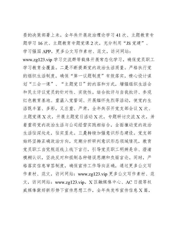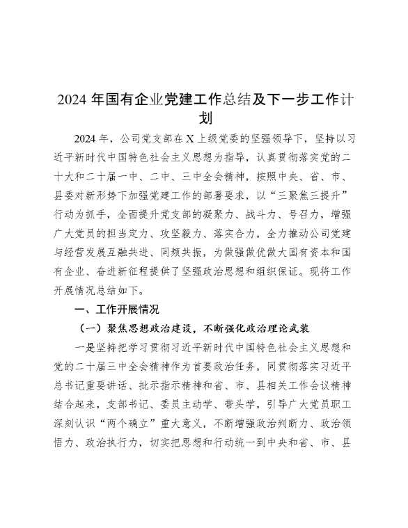 2024年国有企业党建工作总结及下一步工作计划 2024-12-16 Word模板 99 购买前,请一定要先点击这里看看,欢迎持续关注,精彩模板每天推送 预览结束,本文件为word文档,一共9页,共3852字,请购买后,下载后查看 购买前,请一定要先点击这里看看,欢迎持续关注,精彩模板每天推送 资源下载下载价格29 RMBVIP免费升级VIP点击检测网盘有效后购买有任何充值和下载问题请加微信:xuexixuexi66 0 总结汇报