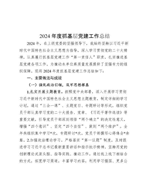 2024年度抓基层党建工作总结 2024-12-16 Word模板 96 购买前,请一定要先点击这里看看,欢迎持续关注,精彩模板每天推送 预览结束,本文件为word文档,一共7页,共2922字,请购买后,下载后查看 购买前,请一定要先点击这里看看,欢迎持续关注,精彩模板每天推送 资源下载下载价格29 RMBVIP免费升级VIP点击检测网盘有效后购买有任何充值和下载问题请加微信:xuexixuexi66 0 总结汇报