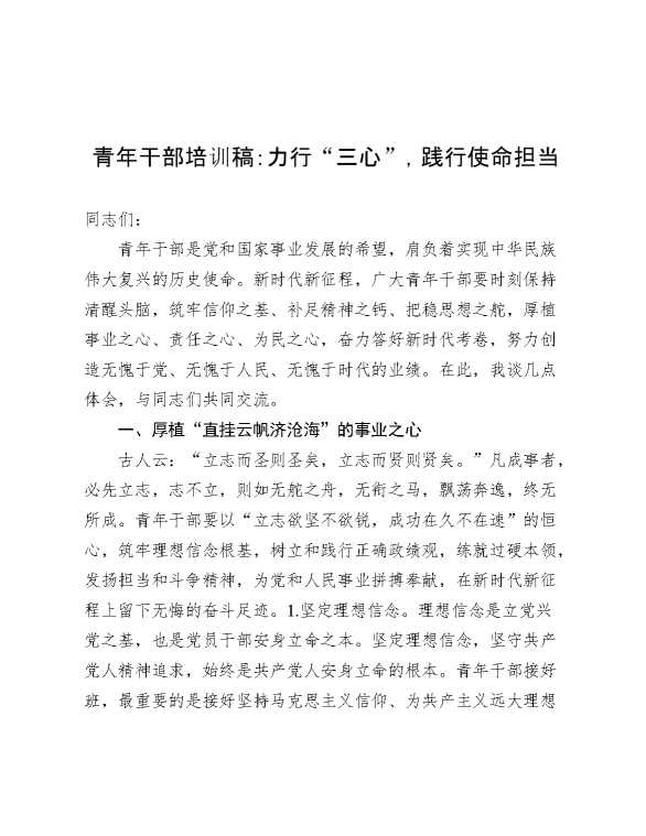 青年干部培训稿:力行“三心”,践行使命担当 2024-12-19 Word模板 59 购买前,请一定要先点击这里看看,欢迎持续关注,精彩模板每天推送 预览结束,本文件为word文档,一共6页,共2505字,请购买后,下载后查看 购买前,请一定要先点击这里看看,欢迎持续关注,精彩模板每天推送 资源下载下载价格29 RMBVIP免费升级VIP点击检测网盘有效后购买有任何充值和下载问题请加微信:xuexixuexi66 0 理论学习