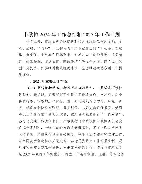 市政协2024年工作总结和2025年工作计划 2024-12-19 Word模板 67 购买前,请一定要先点击这里看看,欢迎持续关注,精彩模板每天推送 预览结束,本文件为word文档,一共6页,共2583字,请购买后,下载后查看 购买前,请一定要先点击这里看看,欢迎持续关注,精彩模板每天推送 资源下载下载价格29 RMBVIP免费升级VIP点击检测网盘有效后购买有任何充值和下载问题请加微信:xuexixuexi66 0 总结汇报