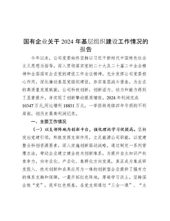 国有企业关于2024年基层组织建设工作情况的报告 2024-12-19 Word模板 64 购买前,请一定要先点击这里看看,欢迎持续关注,精彩模板每天推送 预览结束,本文件为word文档,一共6页,共2623字,请购买后,下载后查看 购买前,请一定要先点击这里看看,欢迎持续关注,精彩模板每天推送 资源下载下载价格29 RMBVIP免费升级VIP点击检测网盘有效后购买有任何充值和下载问题请加微信:xuexixuexi66 0 总结汇报