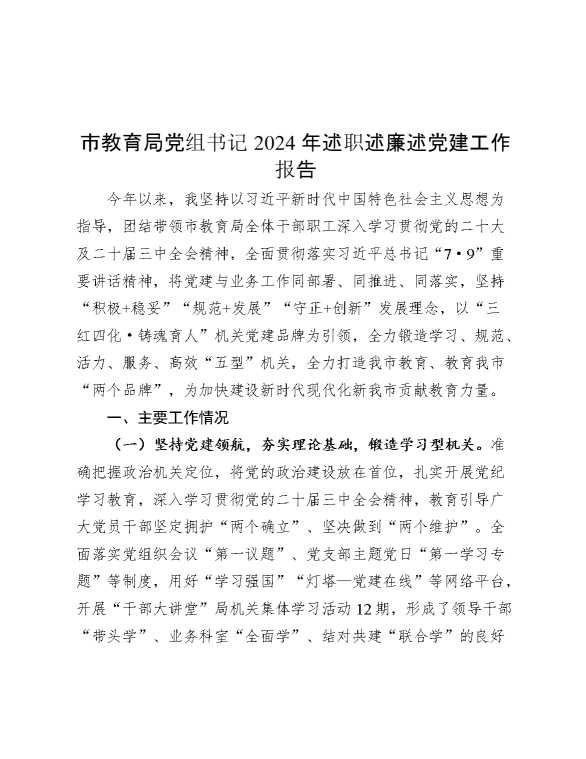 市教育局党组书记2024年述职述廉述党建工作报告 2024-12-19 Word模板 67 购买前,请一定要先点击这里看看,欢迎持续关注,精彩模板每天推送 预览结束,本文件为word文档,一共6页,共2732字,请购买后,下载后查看 购买前,请一定要先点击这里看看,欢迎持续关注,精彩模板每天推送 资源下载下载价格29 RMBVIP免费升级VIP点击检测网盘有效后购买有任何充值和下载问题请加微信:xuexixuexi66 0 总结汇报