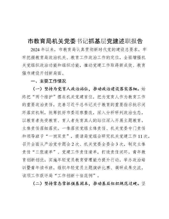 市教育局机关党委书记抓基层党建述职报告 2024-12-19 Word模板 69 购买前,请一定要先点击这里看看,欢迎持续关注,精彩模板每天推送 预览结束,本文件为word文档,一共5页,共1857字,请购买后,下载后查看 购买前,请一定要先点击这里看看,欢迎持续关注,精彩模板每天推送 资源下载下载价格29 RMBVIP免费升级VIP点击检测网盘有效后购买有任何充值和下载问题请加微信:xuexixuexi66 0 总结汇报