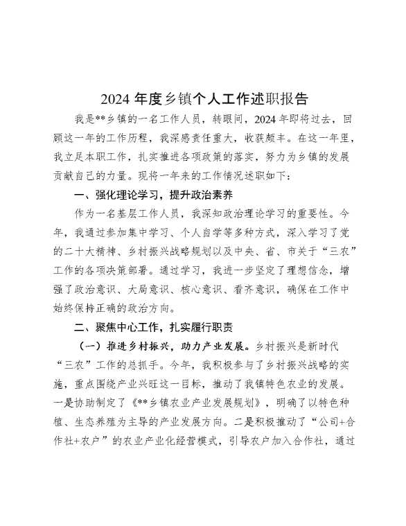 2024年度乡镇个人工作述职报告 2024-12-19 Word模板 70 购买前,请一定要先点击这里看看,欢迎持续关注,精彩模板每天推送 预览结束,本文件为word文档,一共4页,共1523字,请购买后,下载后查看 购买前,请一定要先点击这里看看,欢迎持续关注,精彩模板每天推送 资源下载下载价格29 RMBVIP免费升级VIP点击检测网盘有效后购买有任何充值和下载问题请加微信:xuexixuexi66 0 总结汇报