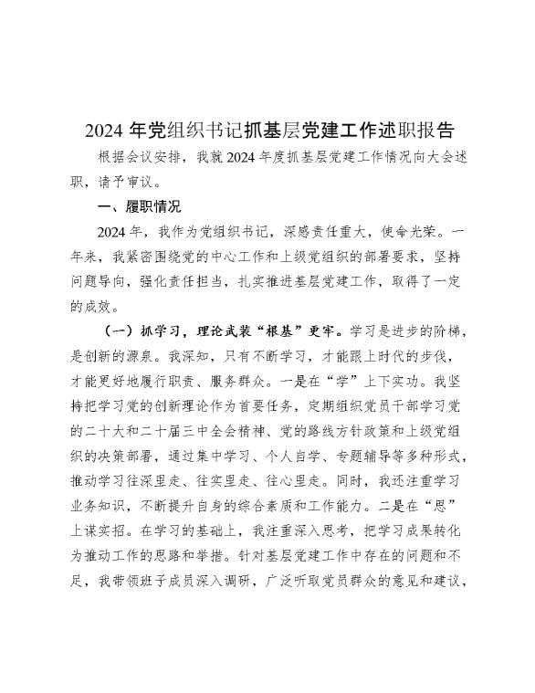 2024年党组织书记抓基层党建工作述职报告 2024-12-19 Word模板 91 购买前,请一定要先点击这里看看,欢迎持续关注,精彩模板每天推送 预览结束,本文件为word文档,一共6页,共2381字,请购买后,下载后查看 购买前,请一定要先点击这里看看,欢迎持续关注,精彩模板每天推送 资源下载下载价格29 RMBVIP免费升级VIP点击检测网盘有效后购买有任何充值和下载问题请加微信:xuexixuexi66 0 总结汇报
