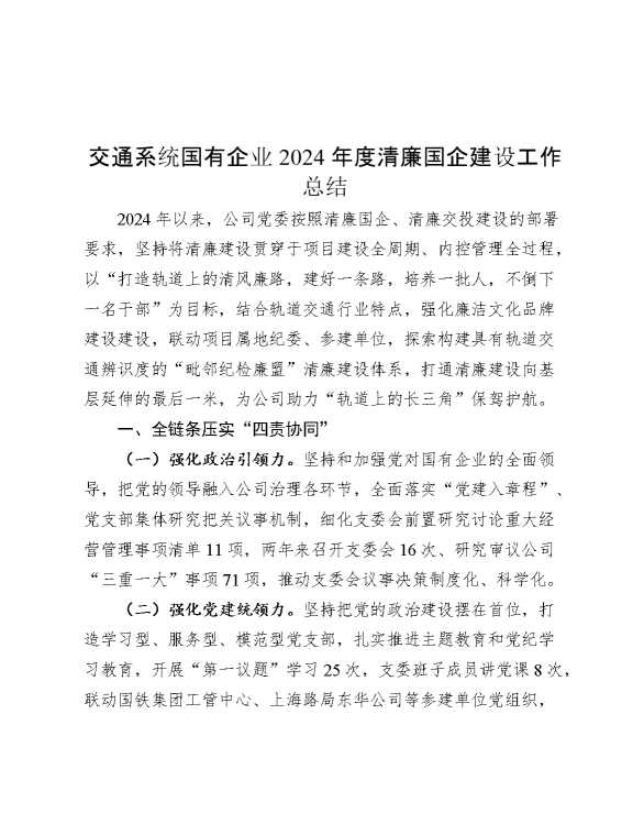 交通系统国有企业2024年度清廉国企建设工作总结 2024-12-19 Word模板 115 购买前,请一定要先点击这里看看,欢迎持续关注,精彩模板每天推送 预览结束,本文件为word文档,一共5页,共2081字,请购买后,下载后查看 购买前,请一定要先点击这里看看,欢迎持续关注,精彩模板每天推送 资源下载下载价格29 RMBVIP免费升级VIP点击检测网盘有效后购买有任何充值和下载问题请加微信:xuexixuexi66 0 总结汇报
