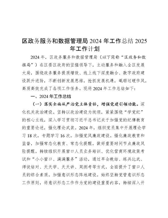 区政务服务和数据管理局2024年工作总结2025年工作计划 2024-12-19 Word模板 94 购买前,请一定要先点击这里看看,欢迎持续关注,精彩模板每天推送 预览结束,本文件为word文档,一共7页,共3015字,请购买后,下载后查看 购买前,请一定要先点击这里看看,欢迎持续关注,精彩模板每天推送 资源下载下载价格29 RMBVIP免费升级VIP点击检测网盘有效后购买有任何充值和下载问题请加微信:xuexixuexi66 0 总结汇报