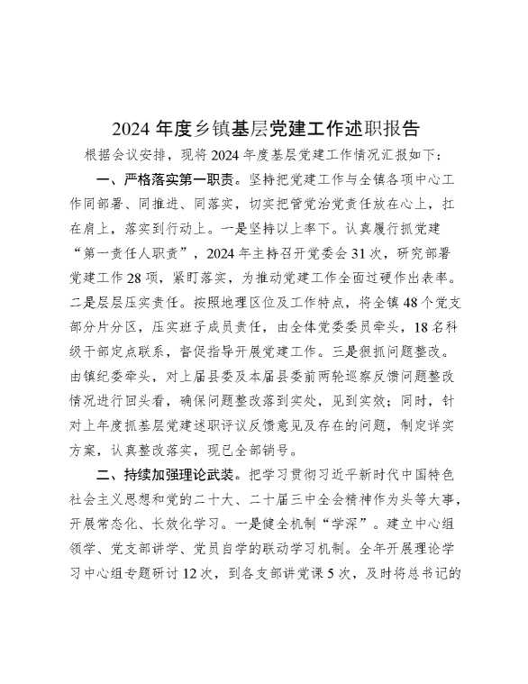2024年度乡镇基层党建工作述职报告 2024-12-19 Word模板 88 购买前,请一定要先点击这里看看,欢迎持续关注,精彩模板每天推送 预览结束,本文件为word文档,一共6页,共2589字,请购买后,下载后查看 购买前,请一定要先点击这里看看,欢迎持续关注,精彩模板每天推送 资源下载下载价格29 RMBVIP免费升级VIP点击检测网盘有效后购买有任何充值和下载问题请加微信:xuexixuexi66 0 总结汇报