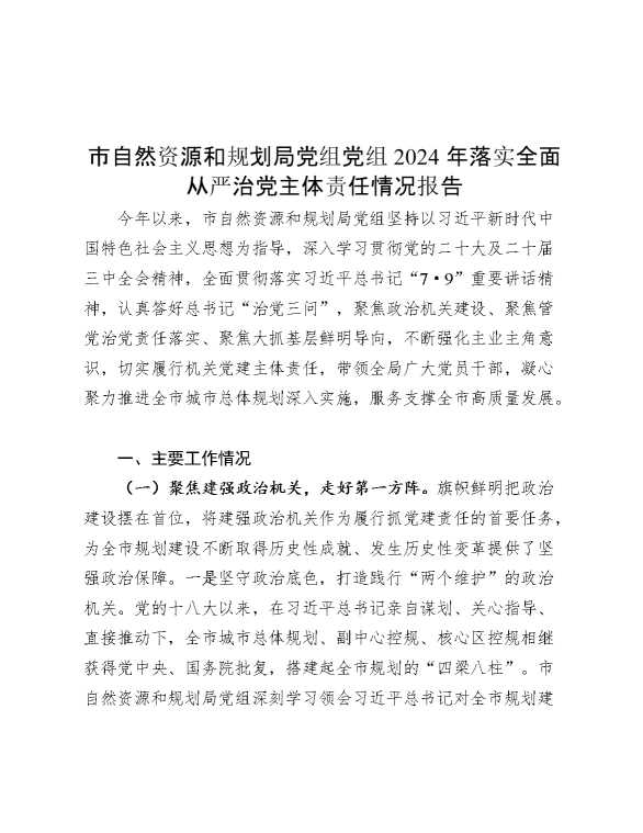 市自然资源和规划局党组党组2024年落实全面从严治党主体责任情况报告 2024-12-19 Word模板 88 购买前,请一定要先点击这里看看,欢迎持续关注,精彩模板每天推送 预览结束,本文件为word文档,一共6页,共2452字,请购买后,下载后查看 购买前,请一定要先点击这里看看,欢迎持续关注,精彩模板每天推送 资源下载下载价格29 RMBVIP免费升级VIP点击检测网盘有效后购买有任何充值和下载问题请加微信:xuexixuexi66 0 总结汇报