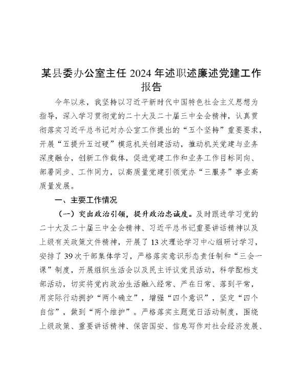 某县委办公室主任2024年述职述廉述党建工作报告 2024-12-23 Word模板 84 购买前,请一定要先点击这里看看,欢迎持续关注,精彩模板每天推送 预览结束,本文件为word文档,一共4页,共1657字,请购买后,下载后查看 购买前,请一定要先点击这里看看,欢迎持续关注,精彩模板每天推送 资源下载下载价格29 RMBVIP免费升级VIP点击检测网盘有效后购买有任何充值和下载问题请加微信:xuexixuexi66 0 总结汇报
