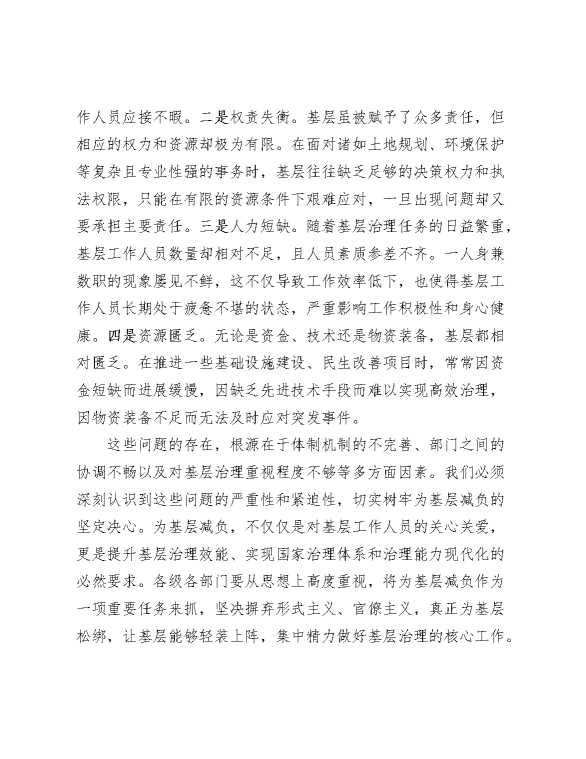 在破解基层治理“小马拉大车”突出问题推进会上的讲话 2024-12-27 Word模板 85 购买前,请一定要先点击这里看看,欢迎持续关注,精彩模板每天推送 预览结束,本文件为word文档,一共6页,共2671字,请购买后,下载后查看 购买前,请一定要先点击这里看看,欢迎持续关注,精彩模板每天推送 资源下载下载价格29 RMBVIP免费升级VIP点击检测网盘有效后购买有任何充值和下载问题请加微信:xuexixuexi66 0 演讲发言