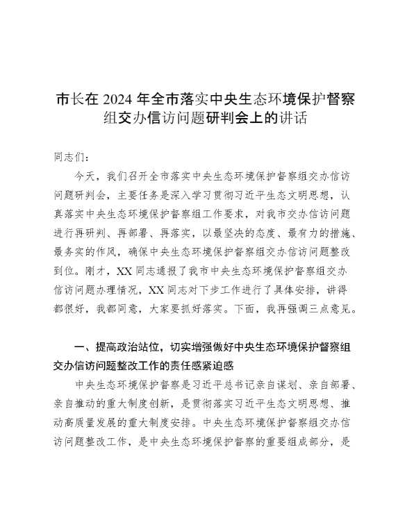 市长在2024年全市落实中央生态环境保护督察组交办信访问题研判会上的讲话 2024-12-27 Word模板 61 购买前,请一定要先点击这里看看,欢迎持续关注,精彩模板每天推送 预览结束,本文件为word文档,一共8页,共3644字,请购买后,下载后查看 购买前,请一定要先点击这里看看,欢迎持续关注,精彩模板每天推送 资源下载下载价格29 RMBVIP免费升级VIP点击检测网盘有效后购买有任何充值和下载问题请加微信:xuexixuexi66 0 演讲发言