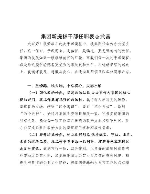 集团新提拔干部任职表态发言 2024-12-27 Word模板 61 购买前,请一定要先点击这里看看,欢迎持续关注,精彩模板每天推送 预览结束,本文件为word文档,一共4页,共1602字,请购买后,下载后查看 购买前,请一定要先点击这里看看,欢迎持续关注,精彩模板每天推送 资源下载下载价格29 RMBVIP免费升级VIP点击检测网盘有效后购买有任何充值和下载问题请加微信:xuexixuexi66 0 演讲发言