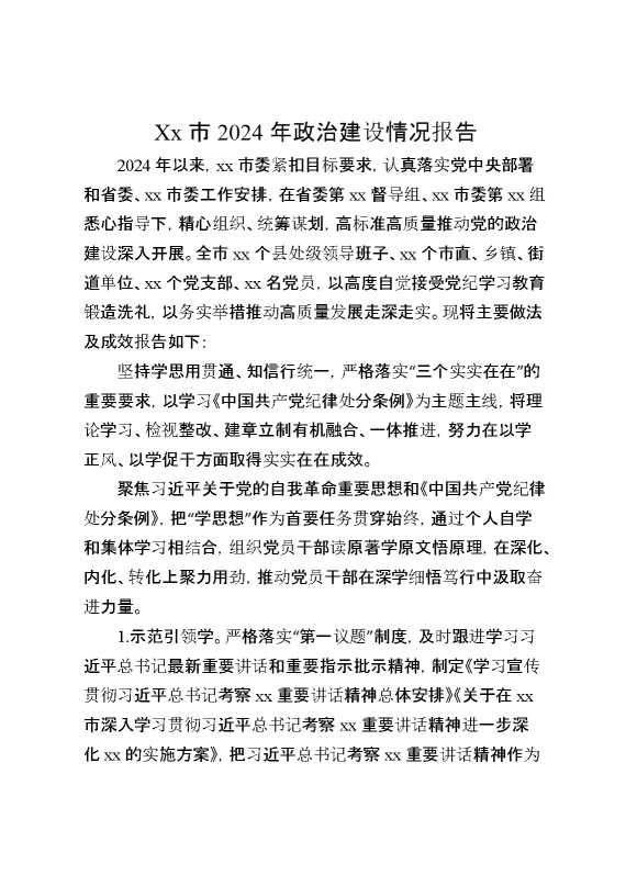 某市2024年政治建设情况报告 2025-01-02 Word模板 74 购买前,请一定要先点击这里看看,欢迎持续关注,精彩模板每天推送 预览结束,本文件为word文档,一共4页,共1655字,请购买后,下载后查看 购买前,请一定要先点击这里看看,欢迎持续关注,精彩模板每天推送 资源下载下载价格29 RMBVIP免费升级VIP点击检测网盘有效后购买有任何充值和下载问题请加微信:xuexixuexi66 0 总结汇报