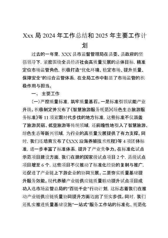 某X局2024年工作总结和2025年主要工作计划 2025-01-02 Word模板 82 购买前,请一定要先点击这里看看,欢迎持续关注,精彩模板每天推送 预览结束,本文件为word文档,一共10页,共5057字,请购买后,下载后查看 购买前,请一定要先点击这里看看,欢迎持续关注,精彩模板每天推送 资源下载下载价格29 RMBVIP免费升级VIP点击检测网盘有效后购买有任何充值和下载问题请加微信:xuexixuexi66 0 总结汇报