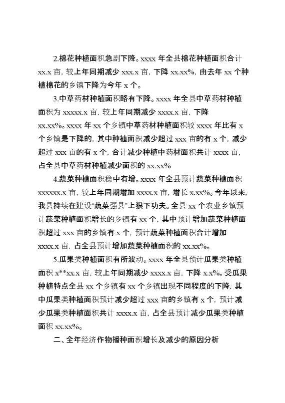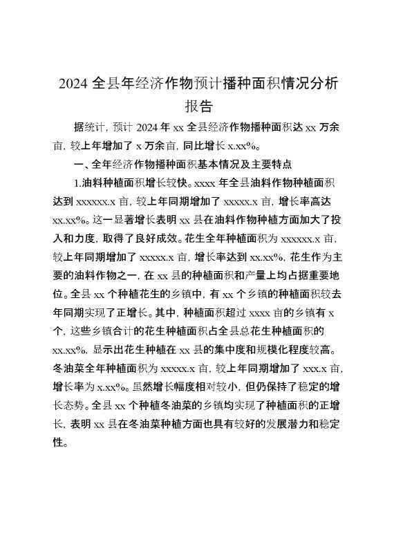 2024全县年经济作物预计播种面积情况分析报告 2025-01-02 Word模板 89 购买前,请一定要先点击这里看看,欢迎持续关注,精彩模板每天推送 预览结束,本文件为word文档,一共5页,共2572字,请购买后,下载后查看 购买前,请一定要先点击这里看看,欢迎持续关注,精彩模板每天推送 资源下载下载价格29 RMBVIP免费升级VIP点击检测网盘有效后购买有任何充值和下载问题请加微信:xuexixuexi66 0 总结汇报