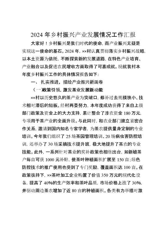 2024年乡村振兴产业发展情况工作汇报 2025-01-02 Word模板 83 购买前,请一定要先点击这里看看,欢迎持续关注,精彩模板每天推送 预览结束,本文件为word文档,一共6页,共2555字,请购买后,下载后查看 购买前,请一定要先点击这里看看,欢迎持续关注,精彩模板每天推送 资源下载下载价格29 RMBVIP免费升级VIP点击检测网盘有效后购买有任何充值和下载问题请加微信:xuexixuexi66 0 总结汇报