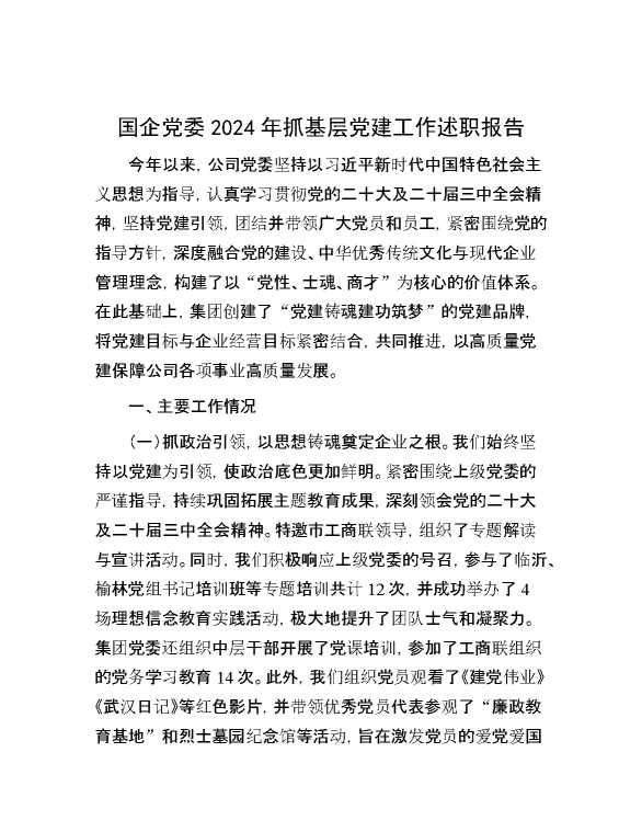 国企党委2024年抓基层党建工作述职报告 2025-01-06 Word模板 57 购买前,请一定要先点击这里看看,欢迎持续关注,精彩模板每天推送 预览结束,本文件为word文档,一共5页,共2319字,请购买后,下载后查看 购买前,请一定要先点击这里看看,欢迎持续关注,精彩模板每天推送 资源下载下载价格29 RMBVIP免费升级VIP点击检测网盘有效后购买有任何充值和下载问题请加微信:xuexixuexi66 0 总结汇报