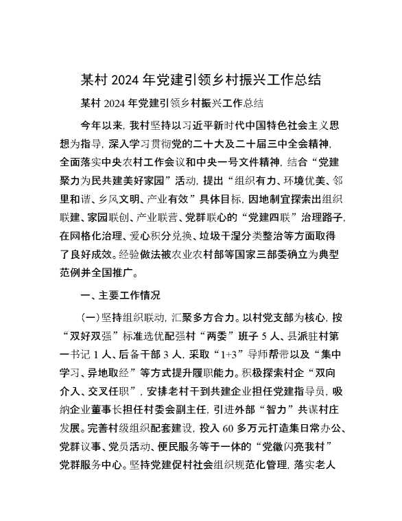 某村2024年党建引领乡村振兴工作总结 2025-01-06 Word模板 58 购买前,请一定要先点击这里看看,欢迎持续关注,精彩模板每天推送 预览结束,本文件为word文档,一共4页,共1825字,请购买后,下载后查看 购买前,请一定要先点击这里看看,欢迎持续关注,精彩模板每天推送 资源下载下载价格29 RMBVIP免费升级VIP点击检测网盘有效后购买有任何充值和下载问题请加微信:xuexixuexi66 0 总结汇报