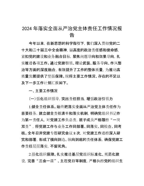 2024年落实全面从严治党主体责任工作情况报告 2025-01-06 Word模板 112 购买前,请一定要先点击这里看看,欢迎持续关注,精彩模板每天推送 预览结束,本文件为word文档,一共9页,共4089字,请购买后,下载后查看 购买前,请一定要先点击这里看看,欢迎持续关注,精彩模板每天推送 资源下载下载价格29 RMBVIP免费升级VIP点击检测网盘有效后购买有任何充值和下载问题请加微信:xuexixuexi66 0 总结汇报