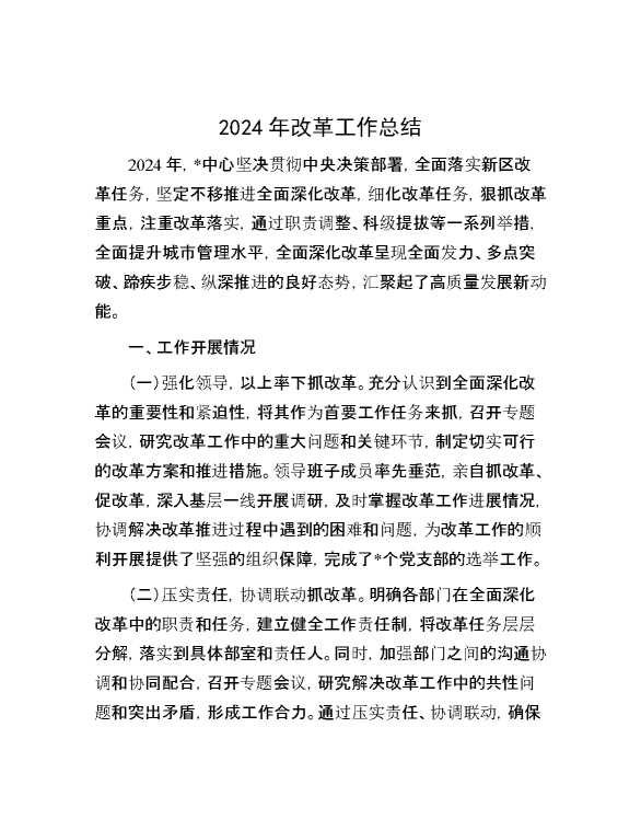2024年改革工作总结 2025-01-06 Word模板 117 购买前,请一定要先点击这里看看,欢迎持续关注,精彩模板每天推送 预览结束,本文件为word文档,一共4页,共1714字,请购买后,下载后查看 购买前,请一定要先点击这里看看,欢迎持续关注,精彩模板每天推送 资源下载下载价格29 RMBVIP免费升级VIP点击检测网盘有效后购买有任何充值和下载问题请加微信:xuexixuexi66 0 总结汇报