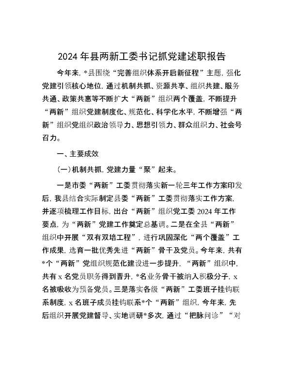 2024年县两新工委书记抓党建述职报告 2025-01-06 Word模板 93 购买前,请一定要先点击这里看看,欢迎持续关注,精彩模板每天推送 预览结束,本文件为word文档,一共8页,共3464字,请购买后,下载后查看 购买前,请一定要先点击这里看看,欢迎持续关注,精彩模板每天推送 资源下载下载价格29 RMBVIP免费升级VIP点击检测网盘有效后购买有任何充值和下载问题请加微信:xuexixuexi66 0 总结汇报
