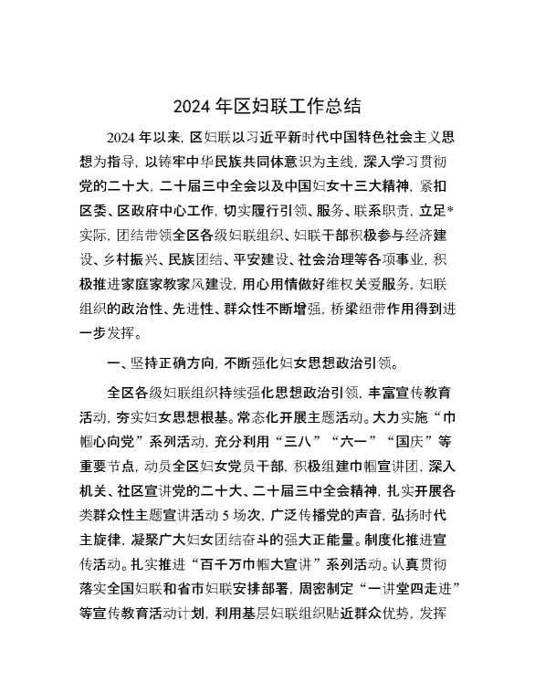 2024年区妇联工作总结 2025-01-06 Word模板 116 购买前,请一定要先点击这里看看,欢迎持续关注,精彩模板每天推送 预览结束,本文件为word文档,一共6页,共2564字,请购买后,下载后查看 购买前,请一定要先点击这里看看,欢迎持续关注,精彩模板每天推送 资源下载下载价格29 RMBVIP免费升级VIP点击检测网盘有效后购买有任何充值和下载问题请加微信:xuexixuexi66 0 总结汇报