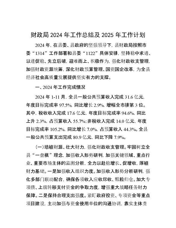 财政局2024年工作总结及2025年工作计划 2025-01-06 Word模板 91 购买前,请一定要先点击这里看看,欢迎持续关注,精彩模板每天推送 预览结束,本文件为word文档,一共6页,共2676字,请购买后,下载后查看 购买前,请一定要先点击这里看看,欢迎持续关注,精彩模板每天推送 资源下载下载价格29 RMBVIP免费升级VIP点击检测网盘有效后购买有任何充值和下载问题请加微信:xuexixuexi66 0 总结汇报