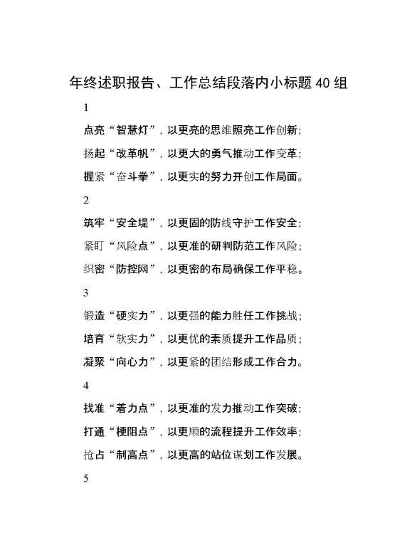 年终述职报告、工作总结段落内小标题40组 2025-01-06 Word模板 91 购买前,请一定要先点击这里看看,欢迎持续关注,精彩模板每天推送 预览结束,本文件为word文档,一共9页,共2292字,请购买后,下载后查看 购买前,请一定要先点击这里看看,欢迎持续关注,精彩模板每天推送 资源下载下载价格29 RMBVIP免费升级VIP点击检测网盘有效后购买有任何充值和下载问题请加微信:xuexixuexi66 0 总结汇报