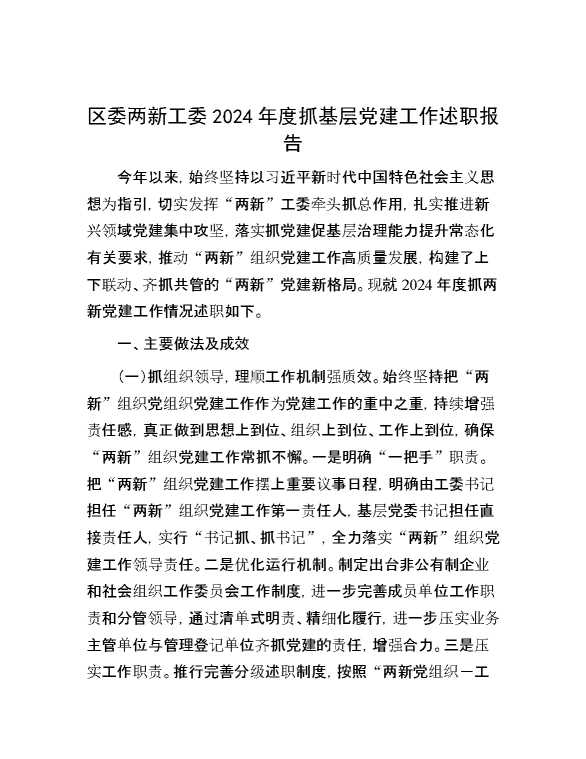 区委两新工委2024年度抓基层党建工作述职报告 2025-01-06 Word模板 83 购买前,请一定要先点击这里看看,欢迎持续关注,精彩模板每天推送 预览结束,本文件为word文档,一共7页,共3443字,请购买后,下载后查看 购买前,请一定要先点击这里看看,欢迎持续关注,精彩模板每天推送 资源下载下载价格29 RMBVIP免费升级VIP点击检测网盘有效后购买有任何充值和下载问题请加微信:xuexixuexi66 0 总结汇报