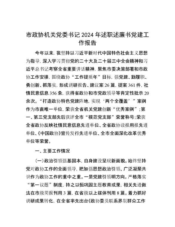 市政协机关党委书记2024年述职述廉书党建工作报告 2025-01-06 Word模板 92 购买前,请一定要先点击这里看看,欢迎持续关注,精彩模板每天推送 预览结束,本文件为word文档,一共5页,共1942字,请购买后,下载后查看 购买前,请一定要先点击这里看看,欢迎持续关注,精彩模板每天推送 资源下载下载价格29 RMBVIP免费升级VIP点击检测网盘有效后购买有任何充值和下载问题请加微信:xuexixuexi66 0 总结汇报