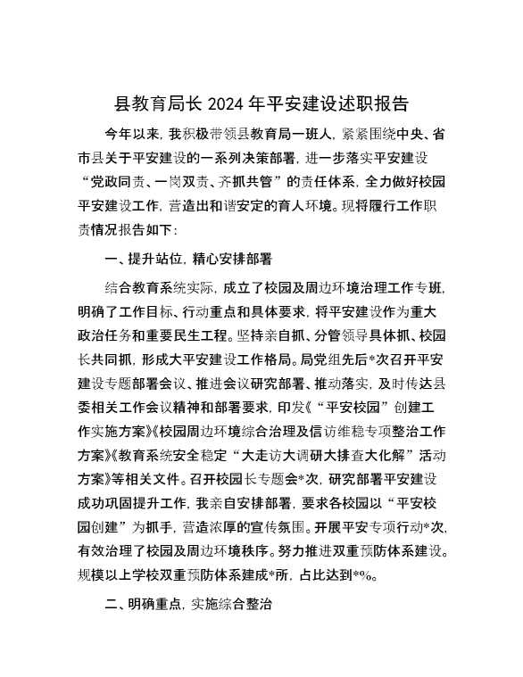 县教育局长2024年平安建设述职报告 2025-01-06 Word模板 117 购买前,请一定要先点击这里看看,欢迎持续关注,精彩模板每天推送 预览结束,本文件为word文档,一共6页,共3034字,请购买后,下载后查看 购买前,请一定要先点击这里看看,欢迎持续关注,精彩模板每天推送 资源下载下载价格29 RMBVIP免费升级VIP点击检测网盘有效后购买有任何充值和下载问题请加微信:xuexixuexi66 0 总结汇报