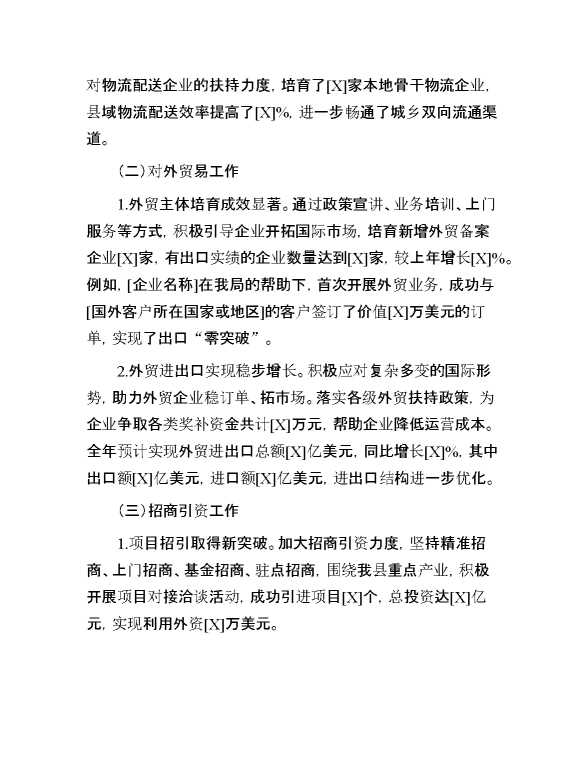 县商务局全年工作总结 2025-01-06 Word模板 83 购买前,请一定要先点击这里看看,欢迎持续关注,精彩模板每天推送 预览结束,本文件为word文档,一共5页,共1959字,请购买后,下载后查看 购买前,请一定要先点击这里看看,欢迎持续关注,精彩模板每天推送 资源下载下载价格29 RMBVIP免费升级VIP点击检测网盘有效后购买有任何充值和下载问题请加微信:xuexixuexi66 0 总结汇报