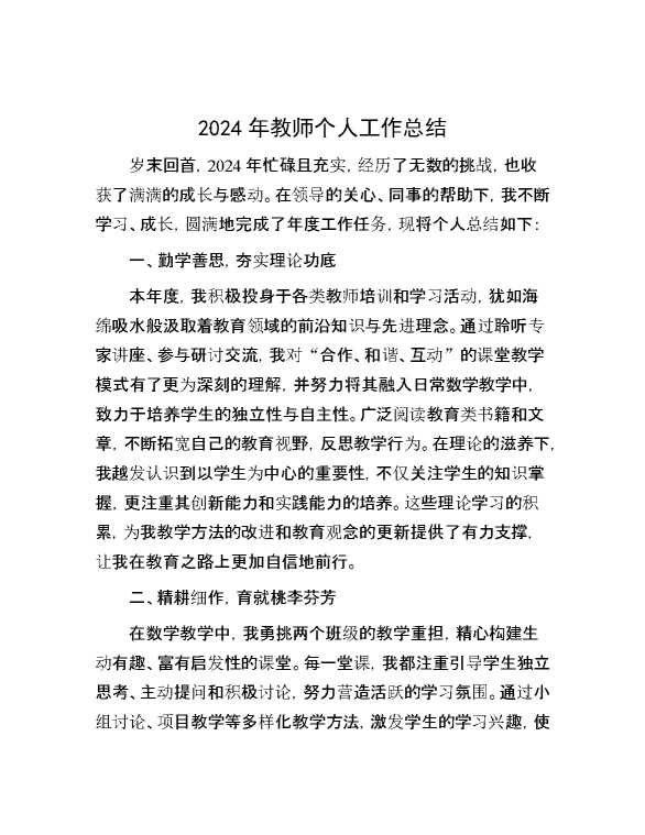 2024年教师个人工作总结 2025-01-06 Word模板 113 购买前,请一定要先点击这里看看,欢迎持续关注,精彩模板每天推送 预览结束,本文件为word文档,一共3页,共1420字,请购买后,下载后查看 购买前,请一定要先点击这里看看,欢迎持续关注,精彩模板每天推送 资源下载下载价格29 RMBVIP免费升级VIP点击检测网盘有效后购买有任何充值和下载问题请加微信:xuexixuexi66 0 总结汇报