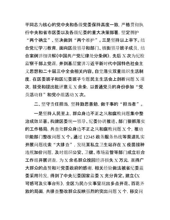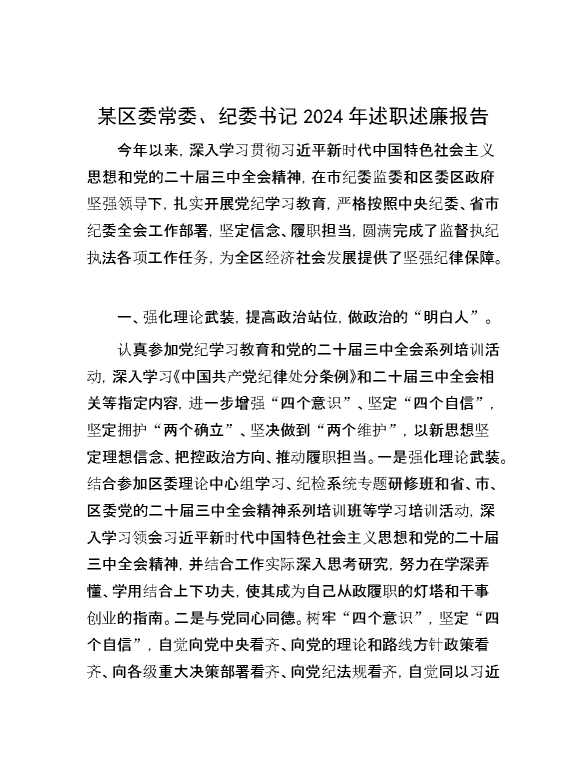 某区委常委、纪委书记2024年述职述廉报告 2025-01-06 Word模板 82 购买前,请一定要先点击这里看看,欢迎持续关注,精彩模板每天推送 预览结束,本文件为word文档,一共6页,共2632字,请购买后,下载后查看 购买前,请一定要先点击这里看看,欢迎持续关注,精彩模板每天推送 资源下载下载价格29 RMBVIP免费升级VIP点击检测网盘有效后购买有任何充值和下载问题请加微信:xuexixuexi66 0 总结汇报