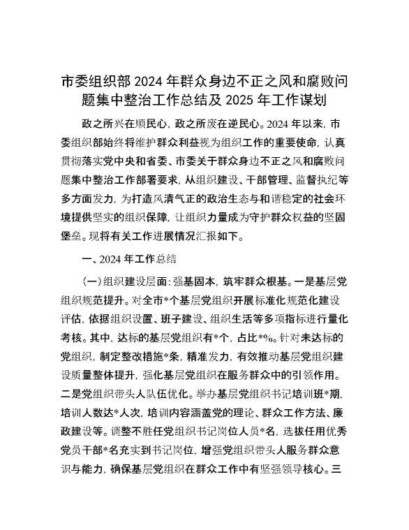 市委组织部2024年群众身边不正之风和腐败问题集中整治工作总结及2025年工作谋划 2025-01-06 Word模板 102 购买前,请一定要先点击这里看看,欢迎持续关注,精彩模板每天推送 预览结束,本文件为word文档,一共7页,共3579字,请购买后,下载后查看 购买前,请一定要先点击这里看看,欢迎持续关注,精彩模板每天推送 资源下载下载价格29 RMBVIP免费升级VIP点击检测网盘有效后购买有任何充值和下载问题请加微信:xuexixuexi66 0 总结汇报
