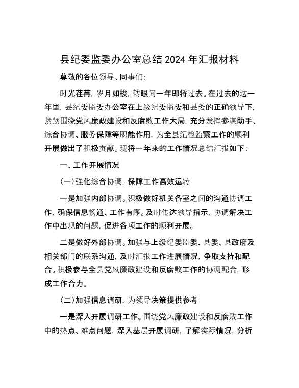 县纪委监委办公室总结2024年汇报材料 2025-01-06 Word模板 91 购买前,请一定要先点击这里看看,欢迎持续关注,精彩模板每天推送 预览结束,本文件为word文档,一共4页,共1283字,请购买后,下载后查看 购买前,请一定要先点击这里看看,欢迎持续关注,精彩模板每天推送 资源下载下载价格29 RMBVIP免费升级VIP点击检测网盘有效后购买有任何充值和下载问题请加微信:xuexixuexi66 0 总结汇报