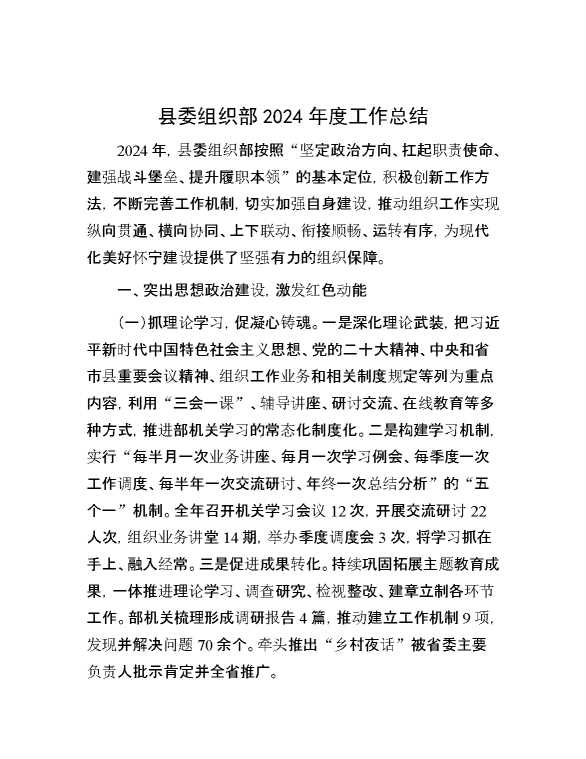 县委组织部2024年度工作总结 2025-01-06 Word模板 90 购买前,请一定要先点击这里看看,欢迎持续关注,精彩模板每天推送 预览结束,本文件为word文档,一共5页,共2327字,请购买后,下载后查看 购买前,请一定要先点击这里看看,欢迎持续关注,精彩模板每天推送 资源下载下载价格29 RMBVIP免费升级VIP点击检测网盘有效后购买有任何充值和下载问题请加微信:xuexixuexi66 0 总结汇报