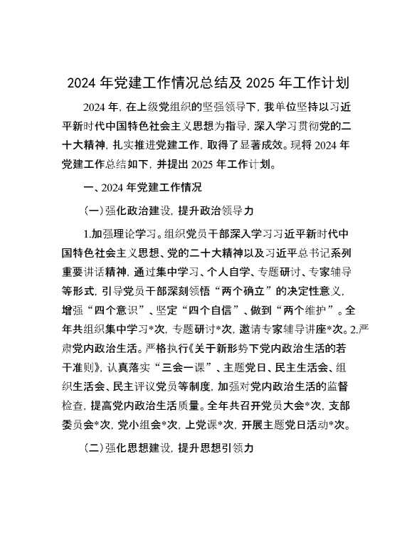 2024年党建工作情况总结及2025年工作计划 2025-01-06 Word模板 86 购买前,请一定要先点击这里看看,欢迎持续关注,精彩模板每天推送 预览结束,本文件为word文档,一共6页,共2723字,请购买后,下载后查看 购买前,请一定要先点击这里看看,欢迎持续关注,精彩模板每天推送 资源下载下载价格29 RMBVIP免费升级VIP点击检测网盘有效后购买有任何充值和下载问题请加微信:xuexixuexi66 0 总结汇报
