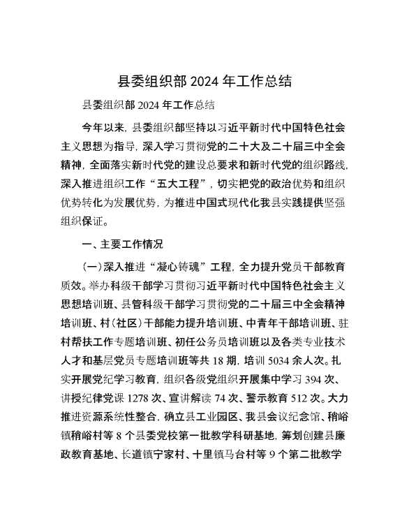 县委组织部2024年工作总结 2025-01-14 Word模板 64 购买前,请一定要先点击这里看看,欢迎持续关注,精彩模板每天推送 预览结束,本文件为word文档,一共6页,共2607字,请购买后,下载后查看 购买前,请一定要先点击这里看看,欢迎持续关注,精彩模板每天推送 资源下载下载价格29 RMBVIP免费升级VIP点击检测网盘有效后购买有任何充值和下载问题请加微信:xuexixuexi66 0 总结汇报