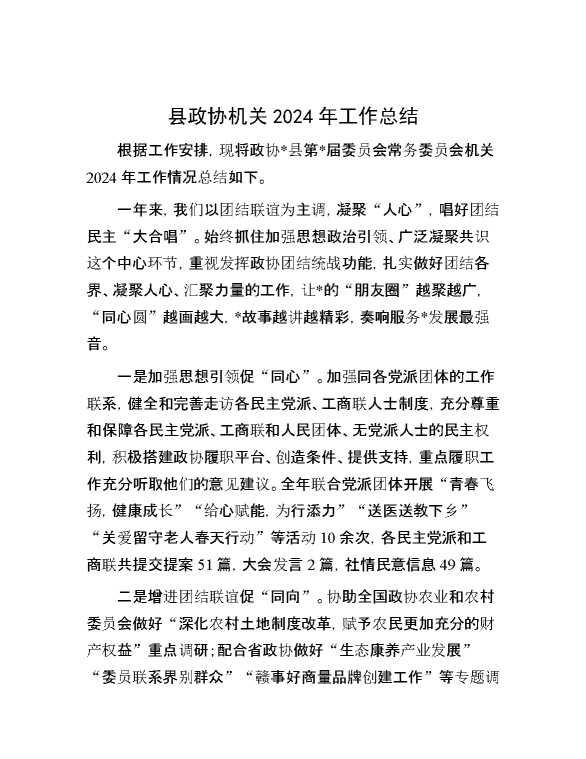 县政协机关2024年工作总结 2025-01-14 Word模板 66 购买前,请一定要先点击这里看看,欢迎持续关注,精彩模板每天推送 预览结束,本文件为word文档,一共4页,共1470字,请购买后,下载后查看 购买前,请一定要先点击这里看看,欢迎持续关注,精彩模板每天推送 资源下载下载价格29 RMBVIP免费升级VIP点击检测网盘有效后购买有任何充值和下载问题请加微信:xuexixuexi66 0 总结汇报
