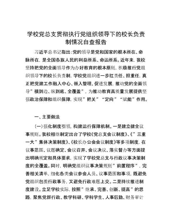 学校党总支贯彻执行党组织领导下的校长负责制情况自查报告 2025-01-14 Word模板 64 购买前,请一定要先点击这里看看,欢迎持续关注,精彩模板每天推送 预览结束,本文件为word文档,一共6页,共2633字,请购买后,下载后查看 购买前,请一定要先点击这里看看,欢迎持续关注,精彩模板每天推送 资源下载下载价格29 RMBVIP免费升级VIP点击检测网盘有效后购买有任何充值和下载问题请加微信:xuexixuexi66 0 总结汇报