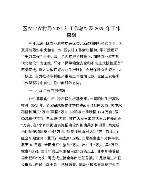 区农业农村局2024年工作总结及2025年工作谋划 2025-01-14 Word模板 121 购买前,请一定要先点击这里看看,欢迎持续关注,精彩模板每天推送 预览结束,本文件为word文档,一共9页,共4479字,请购买后,下载后查看 购买前,请一定要先点击这里看看,欢迎持续关注,精彩模板每天推送 资源下载下载价格29 RMBVIP免费升级VIP点击检测网盘有效后购买有任何充值和下载问题请加微信:xuexixuexi66 0 总结汇报