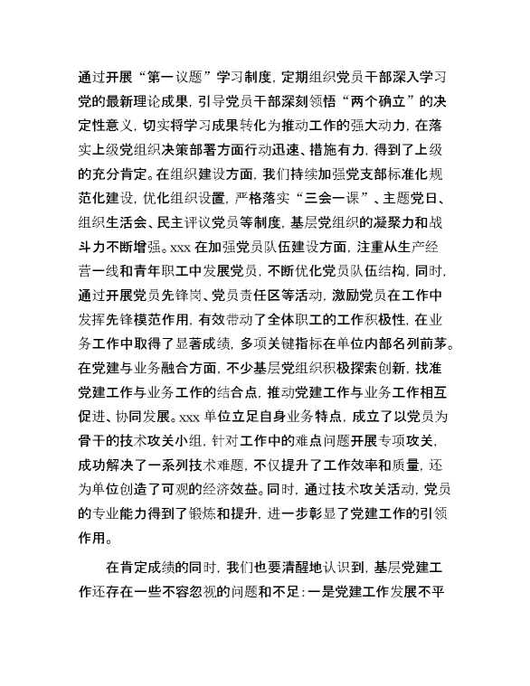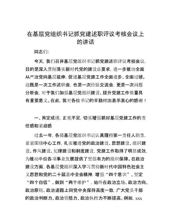 在基层党组织书记抓党建述职评议考核会议上的讲话 2025-01-14 Word模板 72 购买前,请一定要先点击这里看看,欢迎持续关注,精彩模板每天推送 预览结束,本文件为word文档,一共7页,共3264字,请购买后,下载后查看 购买前,请一定要先点击这里看看,欢迎持续关注,精彩模板每天推送 资源下载下载价格29 RMBVIP免费升级VIP点击检测网盘有效后购买有任何充值和下载问题请加微信:xuexixuexi66 0 演讲发言