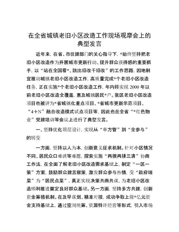 在全省城镇老旧小区改造工作现场观摩会上的典型发言 2025-01-14 Word模板 64 购买前,请一定要先点击这里看看,欢迎持续关注,精彩模板每天推送 预览结束,本文件为word文档,一共4页,共1706字,请购买后,下载后查看 购买前,请一定要先点击这里看看,欢迎持续关注,精彩模板每天推送 资源下载下载价格29 RMBVIP免费升级VIP点击检测网盘有效后购买有任何充值和下载问题请加微信:xuexixuexi66 0 演讲发言