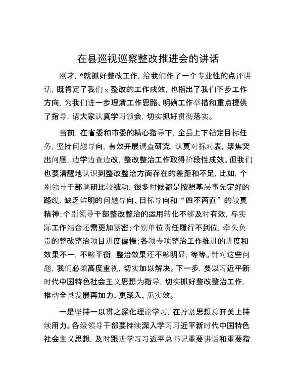 在县巡视巡察整改推进会的讲话 2025-01-14 Word模板 59 购买前,请一定要先点击这里看看,欢迎持续关注,精彩模板每天推送 预览结束,本文件为word文档,一共4页,共1547字,请购买后,下载后查看 购买前,请一定要先点击这里看看,欢迎持续关注,精彩模板每天推送 资源下载下载价格29 RMBVIP免费升级VIP点击检测网盘有效后购买有任何充值和下载问题请加微信:xuexixuexi66 0 演讲发言