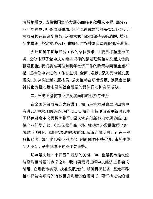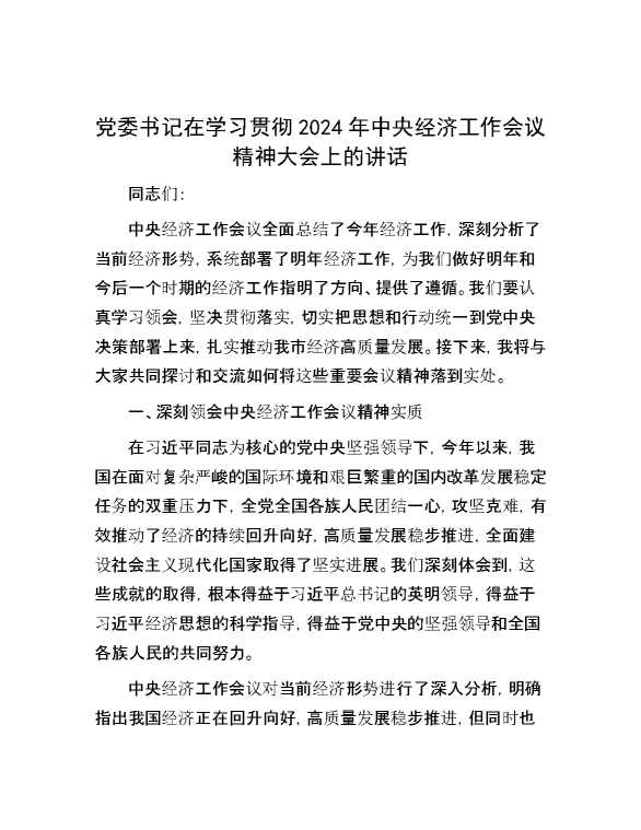 党委书记在学习贯彻2024年中央经济工作会议精神大会上的讲话 2025-01-14 Word模板 59 购买前,请一定要先点击这里看看,欢迎持续关注,精彩模板每天推送 预览结束,本文件为word文档,一共5页,共2371字,请购买后,下载后查看 购买前,请一定要先点击这里看看,欢迎持续关注,精彩模板每天推送 资源下载下载价格29 RMBVIP免费升级VIP点击检测网盘有效后购买有任何充值和下载问题请加微信:xuexixuexi66 0 演讲发言