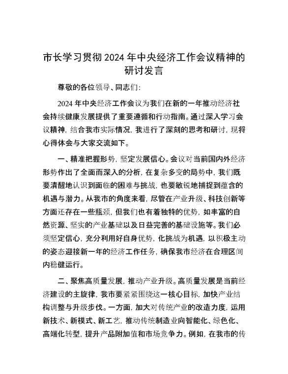 市长学习贯彻2024年中央经济工作会议精神的研讨发言 2025-01-14 Word模板 60 购买前,请一定要先点击这里看看,欢迎持续关注,精彩模板每天推送 预览结束,本文件为word文档,一共5页,共2228字,请购买后,下载后查看 购买前,请一定要先点击这里看看,欢迎持续关注,精彩模板每天推送 资源下载下载价格29 RMBVIP免费升级VIP点击检测网盘有效后购买有任何充值和下载问题请加微信:xuexixuexi66 0 演讲发言