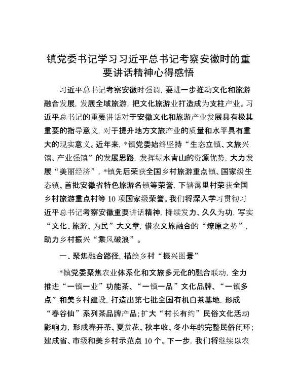 镇党委书记学习习近平总书记考察安徽时的重要讲话精神心得感悟 2025-01-14 Word模板 60 购买前,请一定要先点击这里看看,欢迎持续关注,精彩模板每天推送 预览结束,本文件为word文档,一共4页,共1939字,请购买后,下载后查看 购买前,请一定要先点击这里看看,欢迎持续关注,精彩模板每天推送 资源下载下载价格29 RMBVIP免费升级VIP点击检测网盘有效后购买有任何充值和下载问题请加微信:xuexixuexi66 0 演讲发言