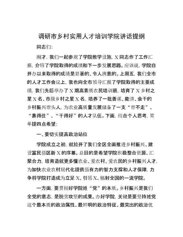 调研市乡村实用人才培训学院讲话提纲 2025-01-14 Word模板 62 购买前,请一定要先点击这里看看,欢迎持续关注,精彩模板每天推送 预览结束,本文件为word文档,一共5页,共1895字,请购买后,下载后查看 购买前,请一定要先点击这里看看,欢迎持续关注,精彩模板每天推送 资源下载下载价格29 RMBVIP免费升级VIP点击检测网盘有效后购买有任何充值和下载问题请加微信:xuexixuexi66 0 演讲发言